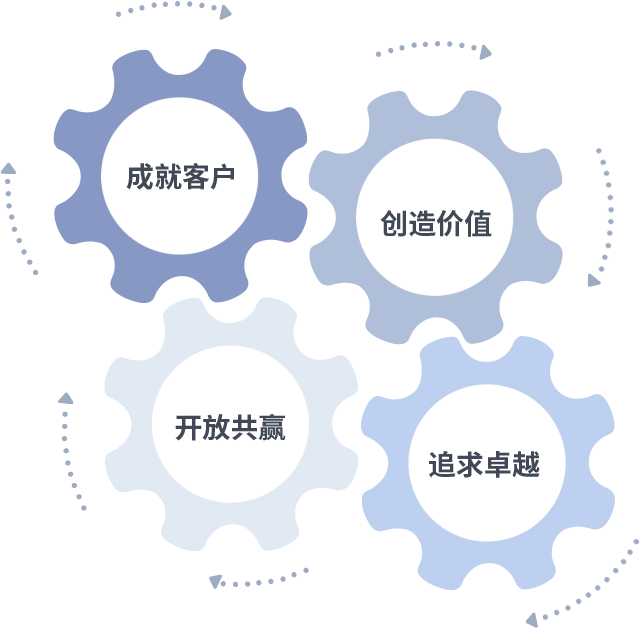 成就客户是一切决策的出发点,创造价值是衡量所有工作的标准,追求卓越是多宝体育做事做人的态度,开放共赢是多宝体育的格局也是最终的结果。价值观的齿轮环环相扣,推动着组织里的每个人不断向前。